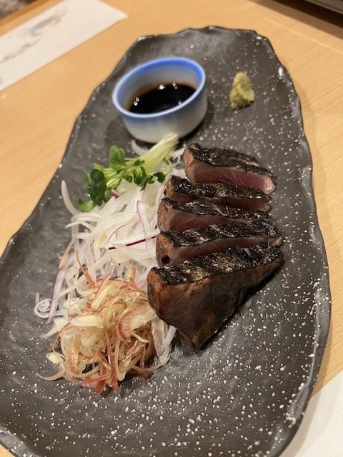 藁の香ばしい香りがついていて、皮目の香ばしさと鰹の旨みがたまらない。